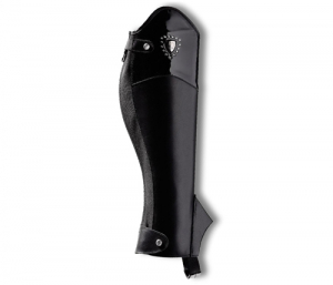 Gambali Tattini in pelle di vitello naturale di alta qualità con fodera interna in pelle, fascia in alto sagomata in vernice, decorata da bottoni gioiello e strass intorno allo scudetto Tattini. Perfettamente sagomati, provvisti di zip YKK e fascia elastica laterale per un'ottima vestibilità.