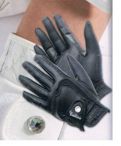 Guanti Tattini decorati con elegante bottone in strass e personalizzati con ricamo Tattini a contrasto,