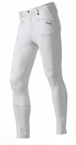 Linea aderente con tasche anteriori zippate e con toppe al ginocchio rinforzate in tessuto.