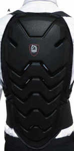 Flessibile e confortevole, provvisto di fessure per l'areazione, strato interno in materiale hi-tech traspirante, fodera a nido d'ape, bretelle e cinta. Omologato CE EN1621-2.