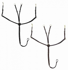 PETTORALE PESSOA A 'Y' in cuoio di prima scelta, imbottito e con elastici. Provvisto di martingala regolabile e sganciabile.
