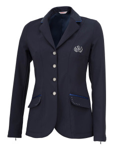 Giacca in microfibra soft-shell, altamente elastica, traspirante, idrorepellente e antivento. Profilo collo e tasche in raso con dettagli crystal. Logo in glitter argento. Lavabile in lavatrice.