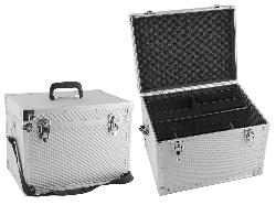 Bauletto porta accessori in alluminio con tracolla modello alto con doppia vaschetta interna regolabile, rinforzi negli angoli, chiudibile con chiave, interno imbottito scomparto per piccoli oggetti . Dimensioni: