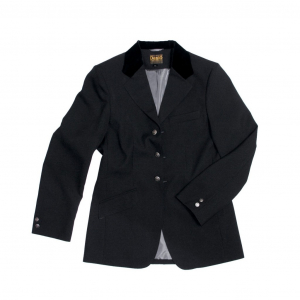 Giacca bambino da competizione in tessuto elasticizzato lavabile, con colletto in velluto e bottoni in metallo.