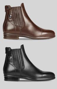 In pelle di vitello naturale, con cerniera lampo posteriore ed elastici laterali rivestiti in pelle.