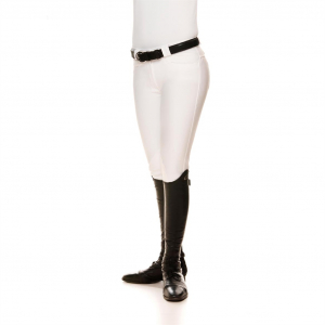 In maglina di cotone elasticizzata (95% cotone e 5% spandex), peso standard 420 grammi, linea aderente con toppe al ginocchio in materiale scamosciato.